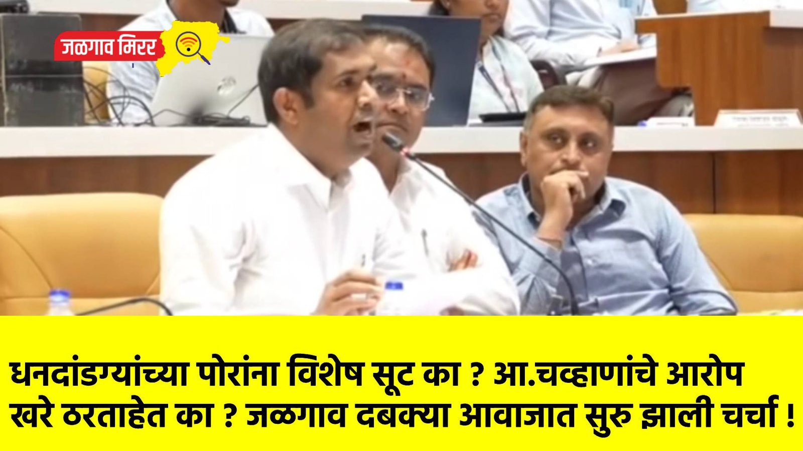 गेल्या २९ ऑगस्ट रोजी जळगाव जिल्हाधिकारी कार्यालयात ही बैठक झाली होती. यावेळी आ.चव्हाण यांनी पालकमंत्री गुलाबराव पाटील यांच्यासमोर हे गंभीर आरोप केले होते. त्यानंतर रात्री उशिरापर्यत आ.चव्हाण एमआयडीसी पोलिसात ठाण मांडून होते. मात्र यात अद्याप कुठलीही नोंद झालेली नाही व त्या दोन बंधूंची चौकशी देखील झालेली नाही. त्यामुळे आता या प्रकरणात आता आ.मंगेश चव्हाण यांनी दोन बंधूवर केलेले आरोप खरे असल्याची चर्चा जळगाव शहरात रंगू लागली आहे. जर याच ठिकाणी सर्व सामान्य व्यक्ती असता तर त्याला पोलिसांनी अद्याप बेड्या देखील ठोकल्या असत्या मात्र धनदांडग्याच्या पोरांना पोलिसांनी देखील सूट दिली आहे का ? अशी देखील चर्चा दबक्या आवाजात सुरु झाली आहे.