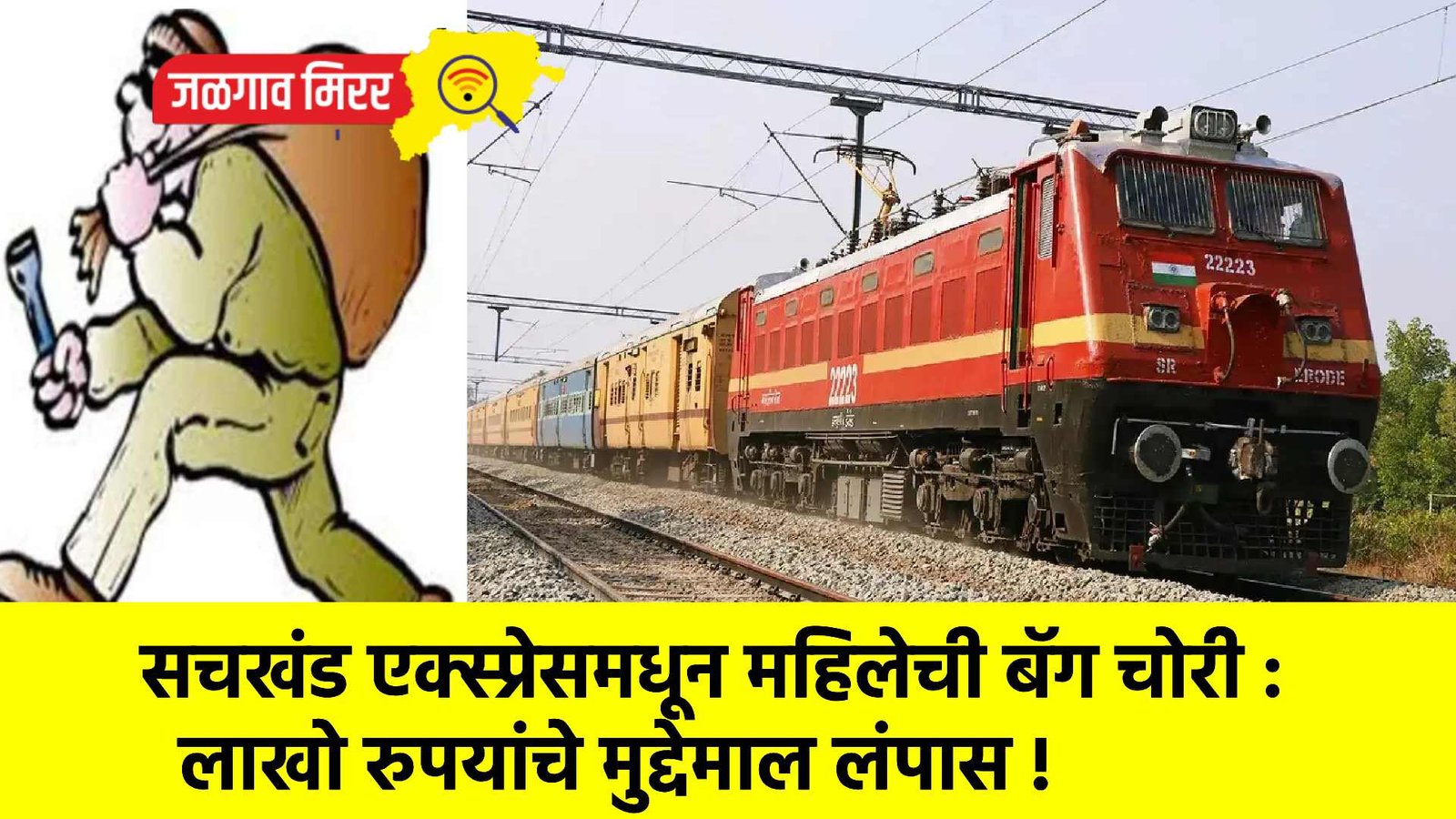 जीआरपी पोलिसांनी दिलेली माहिती अशी की, मनमाड येथील रहिवासी कौशल्या शंकर पाटील त्यांच्या एका मैत्रिणीसोबत १२७१६ क्रमांकाच्या सचखंड एक्स्प्रेसने भोपाळ ते जळगाव असा प्रवास करत होत्या. मंगळवारी सकाळी ६ वाजेच्या सुमारास भुसावळ रेल्वे स्थानकाजवळ गाडी आली. यावेळी कोणते स्टेशन आले आहे? हे पाहण्यासाठी कौशल्या पाटील डब्याच्या दरवाजात गेल्या. ही संधी साधून अज्ञात चोरट्याने सीटखाली ठेवलेली त्यांची बॅग लांबवली.