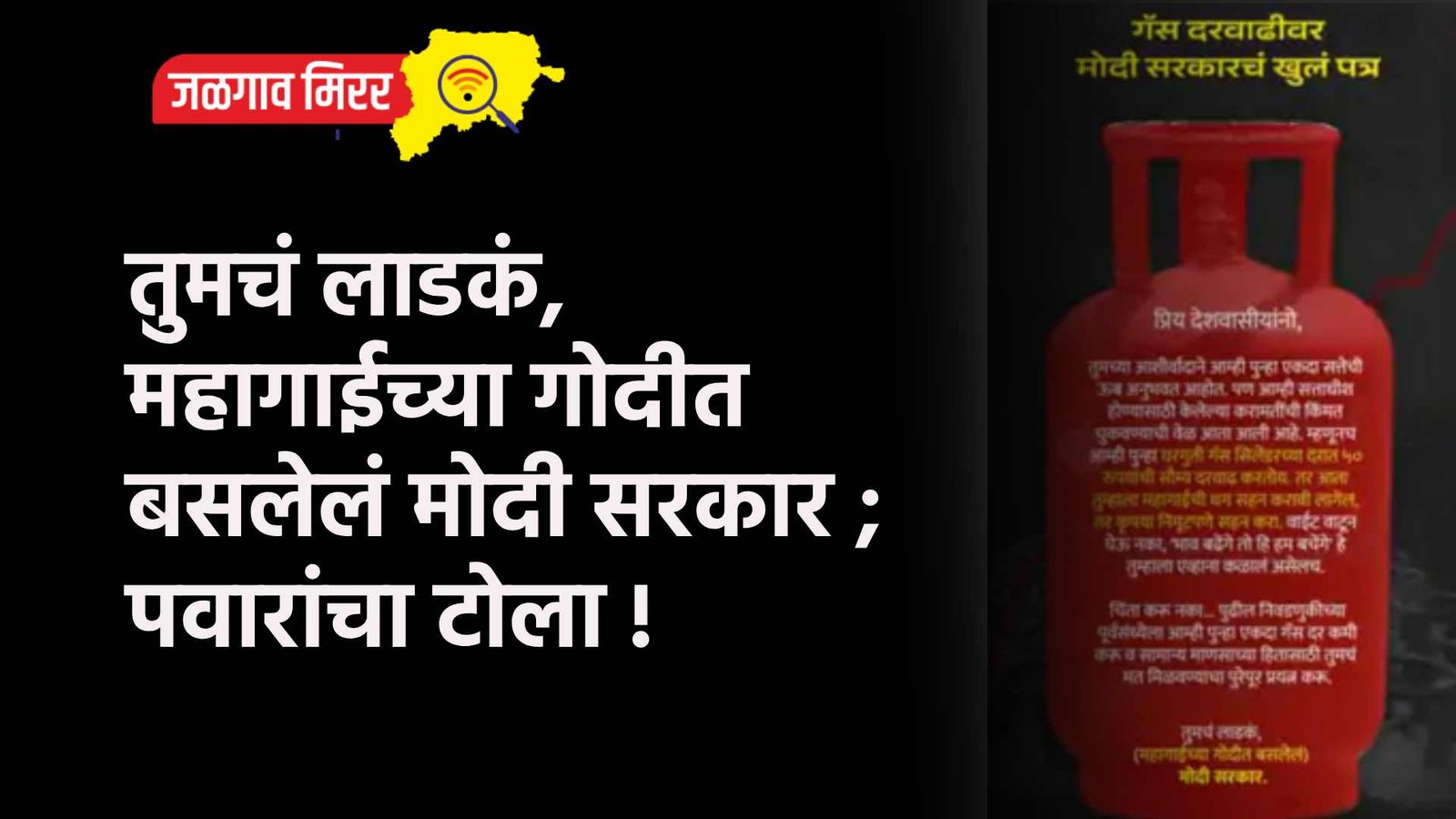 शरद पवार गटाने आपल्या ट्विटर अकाऊंटरवर हे पत्र शेअर केले आहे. गॅस दरवाढीवर मोदी सरकारचं खुलं पत्र, असे शिर्षक असणाऱ्या या पत्रात नमूद करण्यात आले आहे की, प्रिय देशवासीयांनो, तुमच्या आशीर्वादाने आम्ही पुन्हा एकदा सत्तेची ऊब अनुभवत आहोत. पण आम्ही सत्ताधीश होण्यासाठी केलेल्या करामतीची किंमत चुकवण्याची वेळ आता आली आहे. म्हणूनच आम्ही पुन्हा घरगुती गॅस सिलेंडरच्या दरात 50 रुपयांची सौम्य दरवाढ करतोय. तर आता तुम्हाला महागईची धग सहन करावी लागेल. तर कृपया निमूटपणे सहन करा. वाईट वाटून घेऊ नका. ‘भाव बढेंगे तो ही हम बचेंगे’, हे तुम्हाला एव्हाना कळालं असेलच. चिंता करू नका… पुढील निवडणुकीच्या पूर्वसंध्येला आम्ही पुन्हा एकदा गॅस दर कमी करू व सामान्य माणसाच्या हितासाठी तुमचं मत मिळवण्याचा पुरेपूर प्रयत्न करू, तुमचं लाडकं, (महागाईच्या गोदीत बसलेलं) मोदी सरकार. उल्लेखनीय बाब म्हणजे सरकारने केलेली गॅस दरवाढ ही आजपासून म्हणजे 8 एप्रिलपासून लागू करण्यात आली आहे.