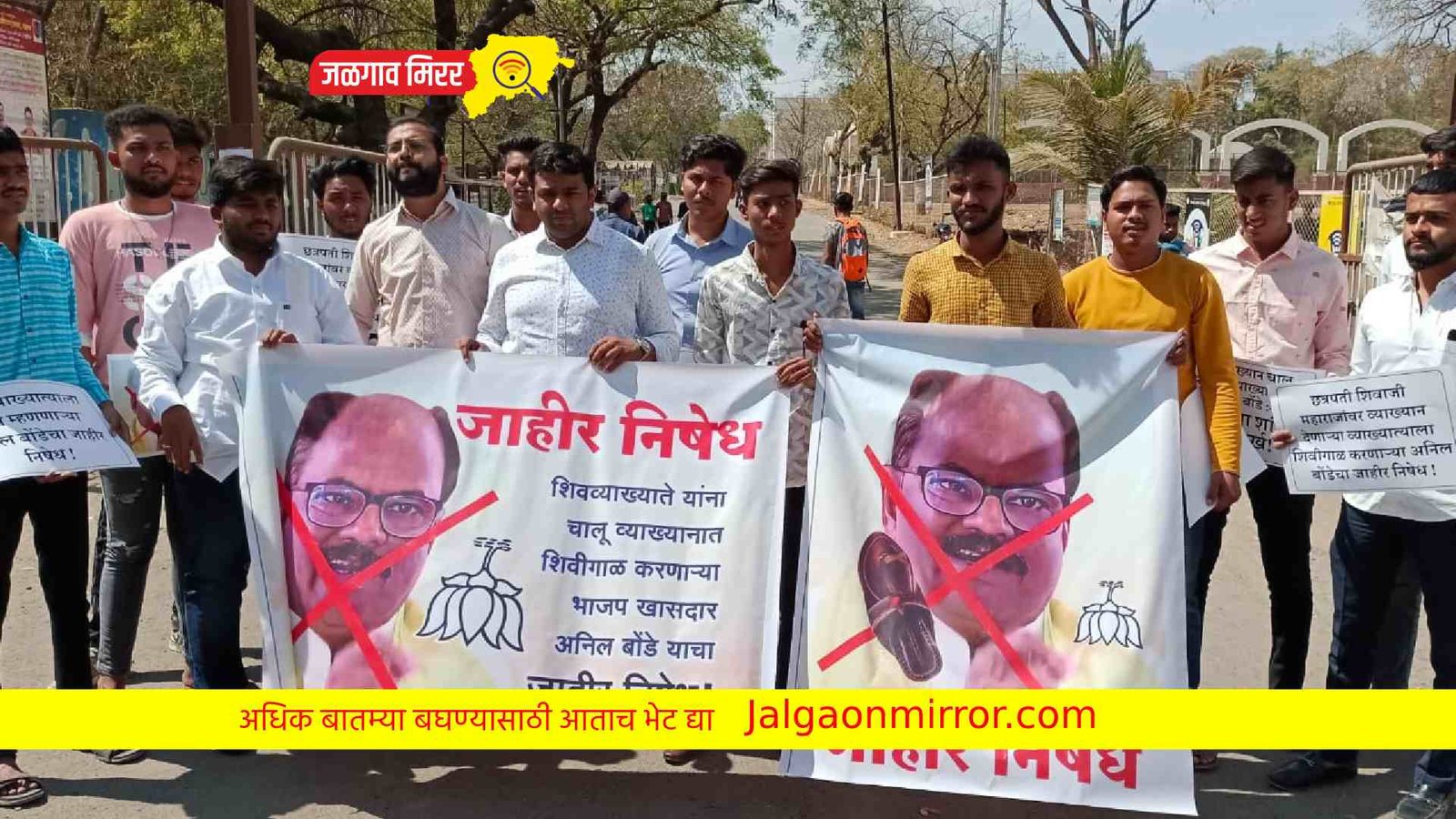 युवासेना कॉलेजकक्ष जळगाव जिल्ह्यातर्फे जळगाव शहरातील मूळजी जेठा महाविद्यालयाच्या मुख्य प्रवेशद्वारावर भाजप खासदार अनिल बोंडेचा जाहीर निषेध करण्यात आला. 19 फेब्रुवारी 2023 रोजी अमरावती येथे छत्रपती शिवाजी महाराज जयंती निमित्त आयोजित शिवव्याख्यानादरम्यान शिवव्याख्याते तुषार उमळे छत्रपती शिवाजी महाराजांचा इतिहास मांडत होते. या कार्यक्रमात भाजप खासदार अनिल बोंडे प्रमुख पाहुणे म्हणून उपस्थित होते. शिवव्याख्यानाच्या एका प्रसंगादरम्यान अनिल बोंडे यांनी शिवव्याख्याते तुषार उमळे यांना “तू मुर्ख आहे का? तुला अक्कल आहे का?“ असे बोल सुनावले व शिवराळ भाषेत सार्वजनिकरित्या अपमान केला. शिवव्याख्याते तुषार उमळे यांनी लागलीचच अनिल बोंडे यांचा चांगला समाचार घेतला.